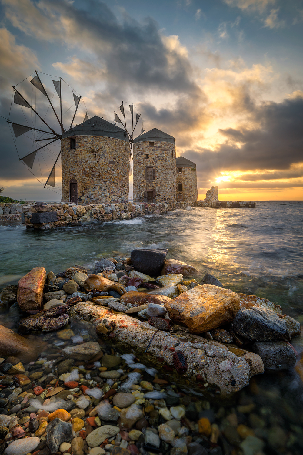 Coastal Windmill at Sunset